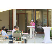 Es fanden sich MOHI-Betreuer*innen, aber auch Systempartner wie die Krankenpflegevereine Nofels und Tosters sowie die Seniorenbetreuung Feldkirch im Innenhof des Haus Nofels ein, um bei passend heißen Temperaturen auf den Sommer anzustoßen.